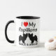 Cette tasse "I Love My Two Papillons" est parfaite pour tous ceux qui aiment deux chiens Papillon, ajoutez simplement vos propres noms de chien.