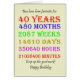 Carte de 40e anniversaire comptant les années, jours, mois, heures et minutes. Une carte pour réfléchir ! Les années bissextiles ont été prises en compte !