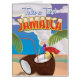 Summer Vacation Cartoon travel poster. Coconut Jamaica holiday poster.