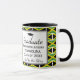 Stylish modern Graduation Mug with customizable text and photo. Background shows the FLAG OF JAMAICA in a tiled pattern. Design shows placeholder image on the left and add your personal message on the right, plus customizable text which reads TO GOD BE THE GLORY. Black border with small graduation topper motif. An ideal gift for graduates.