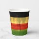 Jamaican Rasta colours red, green, yellow gold and black paper cup with beach and palm tree background. Great for a Jamaica vacation or lovers of island / Caribbean culture.