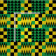 Jamaican flag coloured black, yellow and green geometric patterned fabric