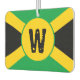 Jamaican flag car air freshner. It features the Jamaican flag on both sides, and a monogram circle on the front where you can add your own initial
