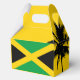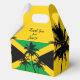 Patriotic Jamaican party favor boxes. This colourful design features a Jamaican flag front and back, with black tropical palm tree silhouettes. The customisable text on the front reads 'Thank You from YOUR NAME', but you can easily personalise this to be HAPPY BIRTHDAY or CONGRATULATIONS if you prefer. These favor boxes are perfect for birthdays, weddings and anniversaries