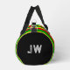 Jamaican rasta coloured red, yellow and green striped duffel bag, with customisable monogram text on one end for you to add your own initials, name or message