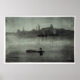 A man paddles a boat along a river as painted by James McNeill Whistler.