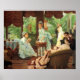 James Tissot Victorian Tea Party poster. Oil painting on canvas from 1878. French artist James Tissot’s Victorian Tea party (In The Conservatory) feautures a group of Victorian aristocrats taking tea in a conservatory greenhouse. One woman lounges in a chair in a red and pink dress, while two sisters sip from teacups wearing matching light blue Victorian dresses with blue ribbons and bustles. A young man sits nearby as a couple in the background chats. Palm tree can be seen through the conservatory glass. A beautiful gift for fans of James Tissot, Victorian England, vintage tea parties, and Victorian fashion.