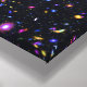 An enhanced pop art simulation of James Webb Space Telescope's field of view shows billions of galaxies with unprecedented clarity.