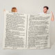 This unique, large fleece blanket is made to look like the first and second page of Jane Austen's classic novel, "Pride and Prejudice." The words are made in a typewriter font with embellishments. The background is a light parchment-tinted paper colour.