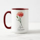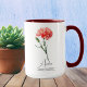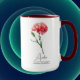 The birth month flower January Carnation coffee mug features a beautiful illustration of a carnation flower. Below the flower, there's a customizable name written in elegant script font. Underneath the name, it says "January - Carnation", indicating that her birth flower is the carnation. It's a lovely personalized mug, a thoughtful gift for someone born in January.