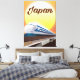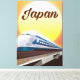 Japanese Bullet Train travel poster in the setting sun of a evening sky.