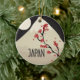 Illustration of a Japanese maple tree in front of a mountain with a moon above. Celebrate your memories of Japan. The name Japan is at the bottom in a deco style font. Choose your ornament shape.