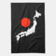 Japan map silhouette in white with red circle from Japanese flag on dark background - black shown but you can change the background colour if you like.