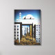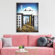 Japan stylized cityscape. Meaning of the inscriptions are "Big(clear) sky" and "Close your eyes and relax".