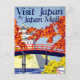 Restored and digitally enhanced travel poster showing view of Japanese building and bridge as seen through foliage. Imperfections and tears removed. Colours corrected. Image courtesy of Library of Congress.