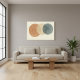 Crafted in a delicate watercolor style, the artwork highlights gentle transparencies and subtle textures, creating a visual representation of harmony and connection. The geometric wall decor design, with its soft concentric rings, is a perfect nod to Mid-Century Modern aesthetics while fitting seamlessly into Japandi, Scandinavian, or Boho interiors.