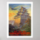 Vintage Japanese Air Transport air travel poster showing a propellor plan and a pagoda temple.
