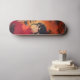 Japanese Anime Skateboard of a young samurai during a battle with a blazing temple.