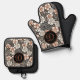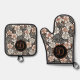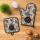Japanese Black and Red Floral Pattern Personalized Oven Mitt & Pot Holder Set