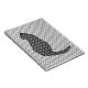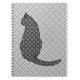 Mixed media digital graphic of a Japanese inspired sitting cat, in a stylized floral, against a kimono print background - Black and white with shades of silver grey / grey