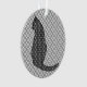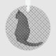 Mixed media digital graphic of a Japanese inspired sitting cat, in a stylized floral, against a kimono print background - Black and white with shades of silver grey / grey