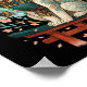 Japanese Cat Cherry Blossom Samurai Moonlight Poster