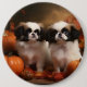 Japanese Chin Puppy Autumn Delight Pumpkin 6 Inch Round Button