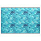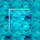 Modern take on a traditional Japanese cloud pattern fabric - stylized clouds in silky gradients of aqua, teal blue, and turquoise, accented with glimpses of dark indigo blue evening sky