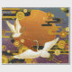 Japanese crane bird colourful sky illustration pat wrapping paper