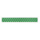 Ribbon in a classic Japanese kimono pattern of stylized cranes, arranged in a pattern of hexagons, in pale and medium jade green and light sky blue, on a dark jade green background