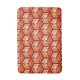 Bath mat in a classic Japanese kimono pattern of stylized cranes, arranged in a pattern of hexagons, in pastel and medium orange and cream, on a deep mandarin orange background