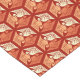 Table runner in a classic Japanese kimono pattern of stylized cranes, arranged in a pattern of hexagons, in pastel and medium orange and cream, on a deep mandarin orange background