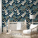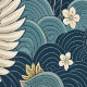 Japanese Cranes on Navy Blue Wallpaper