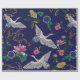 Japanese cranes, waves and flowers. Embroidery ill Wrapping Paper