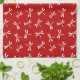 Japanese Dragonfly Pattern, Deep Red and White Kitchen Towel