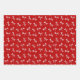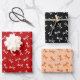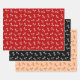 Wrapping paper in a Traditional Japanese dragonfly, or tombo pattern, also called katsumushi (“winning bugs”) by samurai warriors, who used dragonfly motifs to invoke victory - White dragonflies on a deep Chinese red background, white dragonflies on a black background, and deep Mandarin orange dragonflies on a pastel orange background