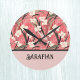 Japanese Floral in Salmon Pink White Red w Initial Round Clock
