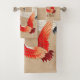 Japanese style group of cranes in flight, in creamy white and fiery reds and orange, over old simulated bamboo paper. Classic Japan art turned modern, timeless symbols of longevity, health, good fortune and fidelity.