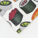 Features an original marker illustration of an assortment of delicious Japanese sushi selections including California roll, spicy tuna roll, avocado roll, caviar roll, and salmon nigiri. Perfect for your favourite fan of Japanese food!