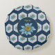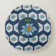 Japanese Geometric Lily Flower Pattern Monogram Round Pillow