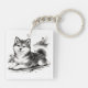 A charming acrylic keychain featuring a relaxed puppy illustrated in a Japanese ink painting style.