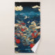 Japanese inspired luxury floral art featuring an elegant traditional style with deep blue tones, gold accents, cranes, and layered floral elements. Perfect for refined bathroom decor, spa-inspired interiors, and those who love timeless Asian art aesthetics.