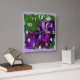 Wall clock with a rough squared image of a deep purple Japanese iris in bloom. Customizable ~ add text by clicking "Customize it!" ~ background colour may also be changed by choosing edit>background and then choosing a colour from the chart. © Little Wing Photography & Design