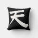 Pillow with Japanese Kanji (Calligraphy) Design. Meaning: Sky, or Heaven. White on Black Design.