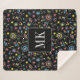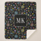 Japanese Kawaii Doodles on Black Monogram Initials Sherpa Blanket