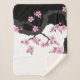 Japanese Kimono Black and White Pink Sakura Sherpa Blanket