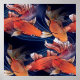 The koi fish are symbols of love and friendship, as well as good fortune and luck, in the Japanese culture. They're treasured part of lily ponds that give Japanese decoration its peaceful feeling.