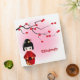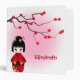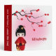 On this item, you see a cute kawaii kokeshi with red kimono, standing at a sakura tree