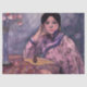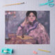 This design features a painting by the Japanese Impressionist artist Fujishima Takeji (1867–1943). It shows an elegant Asian lady wearing a traditional kimono that is mainly pink and purple with a black pattern. She is resting against a table on which a small perfume bottle is placed. There is also a vase of pink roses on the table. It is an image of restrained luxury and elegance.