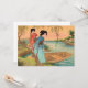 At a glance this image has the appearance of a woodblock print. Upon closer examination you will notice the graceful dot pattern of a stone chromolithograph of the Victorian period. The gentle colours and design illustrate a Japanese lakeside scene with two geishas and a boat. The willow trees and the apricot sky frame the colourful image. It is a delightful design for decor, personal correspondence and accessories.